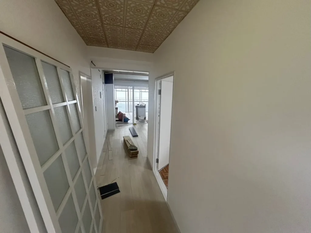 既存の状態によっては、予定外の補修が必要になるケースがあります。例えば壁紙を剥がしたら下地の石膏ボードが劣化していて下地補修工事が追加になった、水回りを開けてみたら配管の老朽化で交換が必要になった等です。また古い建物だとアスベスト調査や除去が必要になり費用が増えることもあります。逆に、同じフロア内でまとめて施工できる場合は足場や養生の手間をまとめて効率化でき、コストダウンにつながることもあります。このように施工条件や追加の有無で費用は前後します。