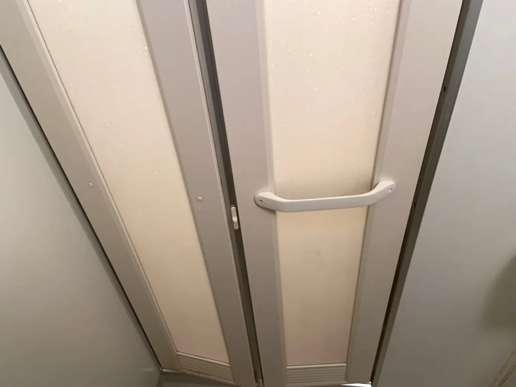 愛知県名古屋市北区|浴室ドアクリーニング施工事例|黒カビ・水垢汚れを徹底除去