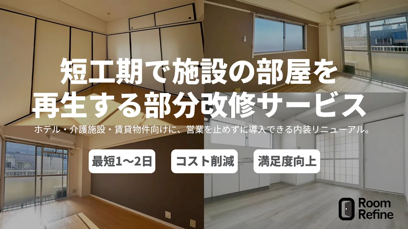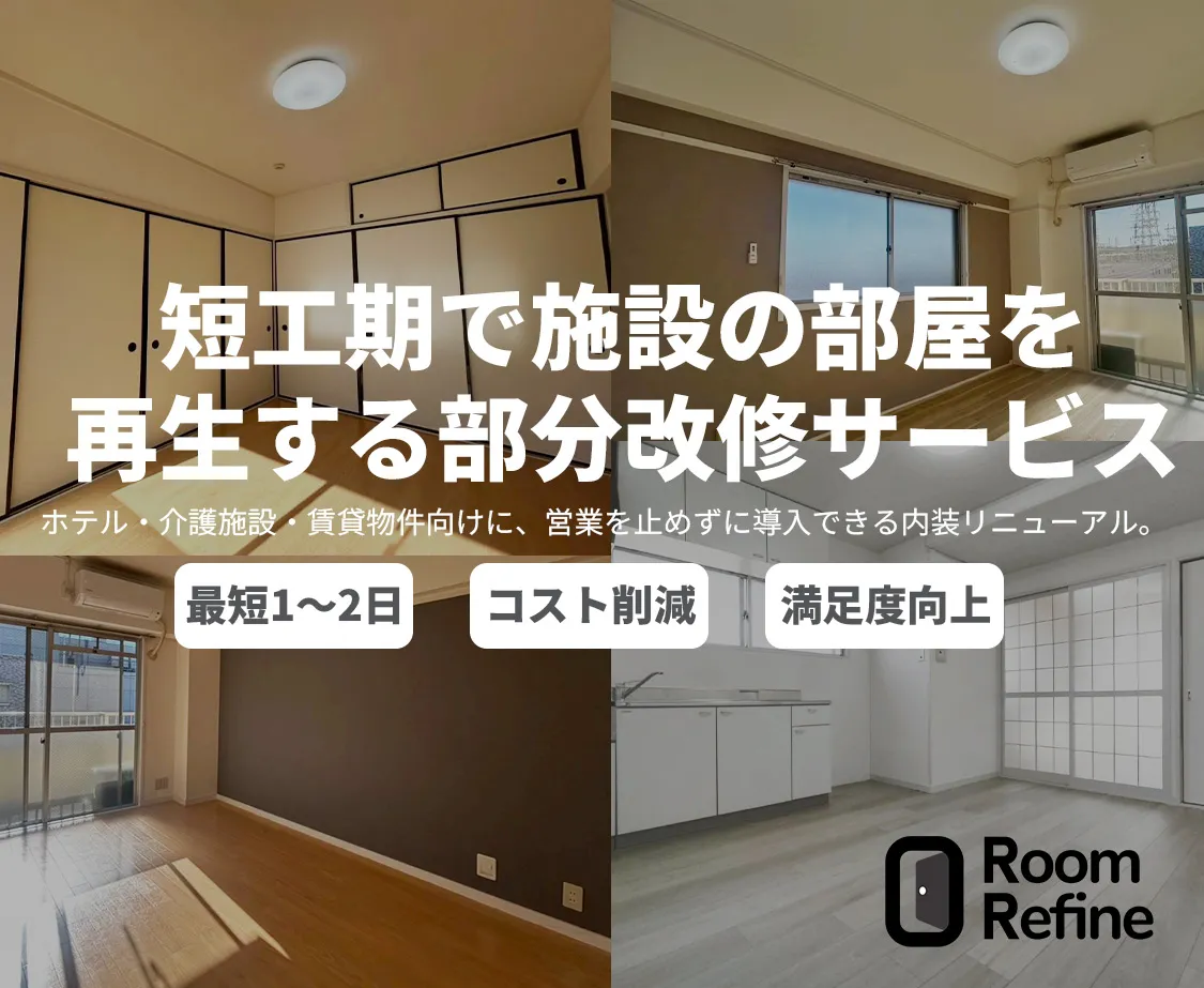 客室・居室の部分リフォーム、小規模リフォーム、内装工事を短工期で実現するサービス|Room Refine